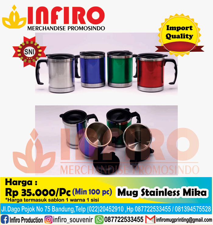 - Tinta sablon yang kami gunakan dalam mencetak souvenir tumbler bandung ini menggunakan bahan yang di import langsung dari Amerika, sehingga hasil gambar mug di tempat kami terbukti NO 1!